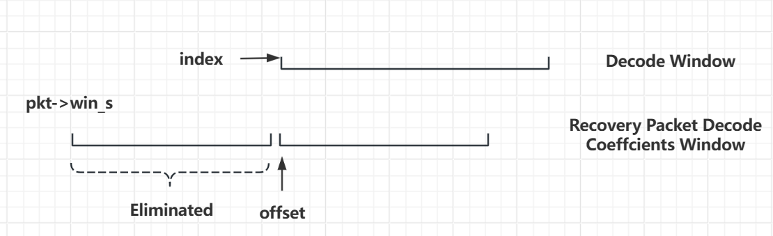 • 先通过feedback_inorderinorder进行比较,将接收端已经按序接收到的信息包序号和所占内存空间指针弹出编码窗口_encodingWindow和存放指向信息包内存空间指针_sourceBlockBuffer【二者均为deque队列类型,里面存放的分别是uint32_tstd::shared_ptr< trevi::SourceBlock >】,以避免不必要的资源浪费,并将新的信息包序号和指向信息包内存空间指针放入;